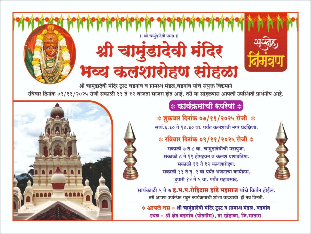 are completed with one arati for each direction. Likewise 25 aratis in total are sung with accompaniment of dhol and zanja. In the end, mantrapushpanjali is recited and then the palakhi rests for the day in the Sabhamandap. On Vijayadashami, the Padukas of devi are placed in the palakhi and with a lot of enthusiasm, the palakhi is taken to the border of the village to perform Seemollanghan (depictive crossing the border). At night, the pakhi procession is carried out through the village with sounds of dhol and zanja and then finally this festival ends. During navartra, devotional songs are sung by professional devotional village groups.